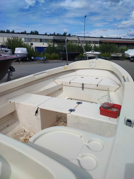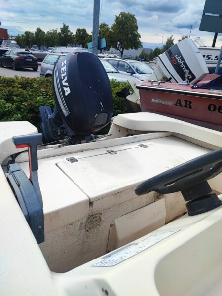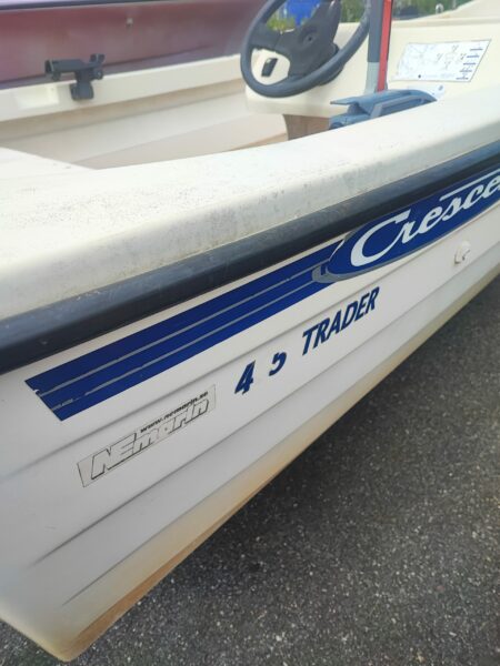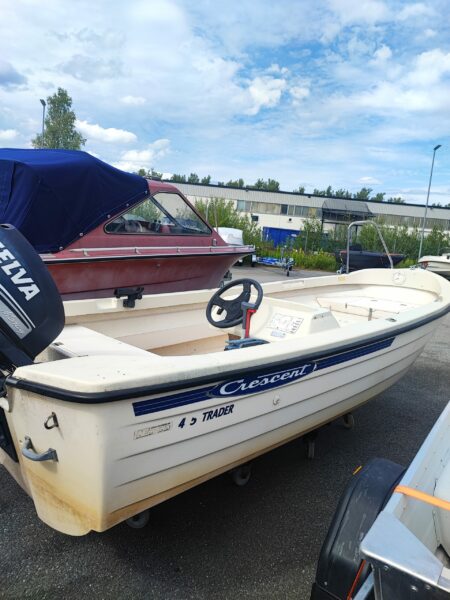 Beskrivning: Denna Crescent 465 är i utmärkt skick och har varit väl omhändertagen. Med en kraftfull och pålitlig Selva 25 hk motor från 2016, ger den både smidig hantering och pålitlig prestanda. Perfekt för dig som älskar att spendera tid på vattnet, vare sig det är för avkoppling, utflykter eller fiske. Båten är utrustad med kapell för extra skydd och har gott om förvaringsutrymme.