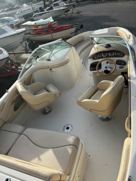 Sea Ray 210 SD från år 2000 är den perfekta båten för dig som vill ha en bekväm och kraftfull daycruiser för hela familjen. Med sin stilrena design, imponerande prestanda och smarta layout har den något för alla, oavsett om du är ute efter en rolig dag på sjön, vattensporter eller en avkopplande tur med vänner. Detta är en båt som levererar både fart och komfort!