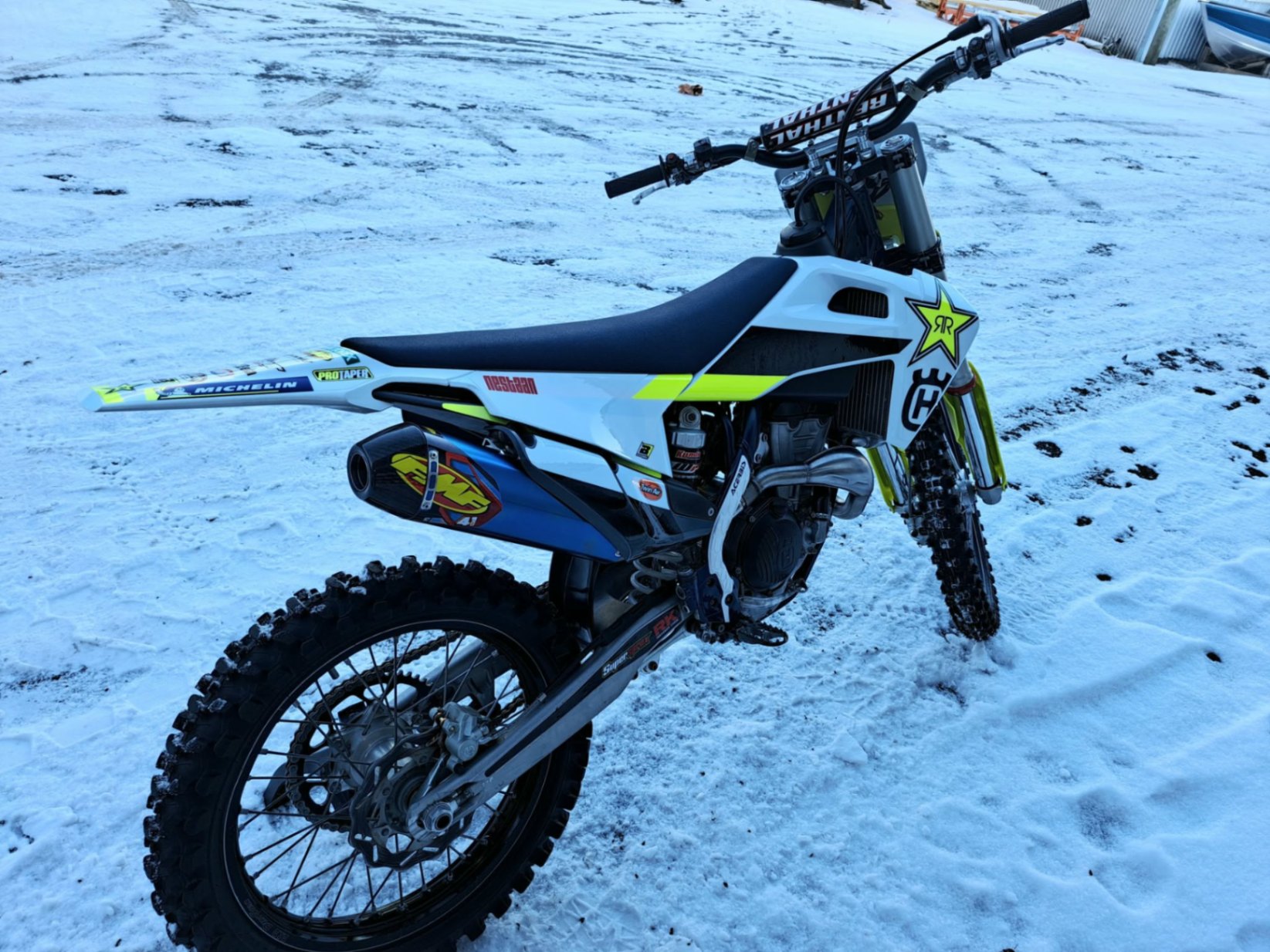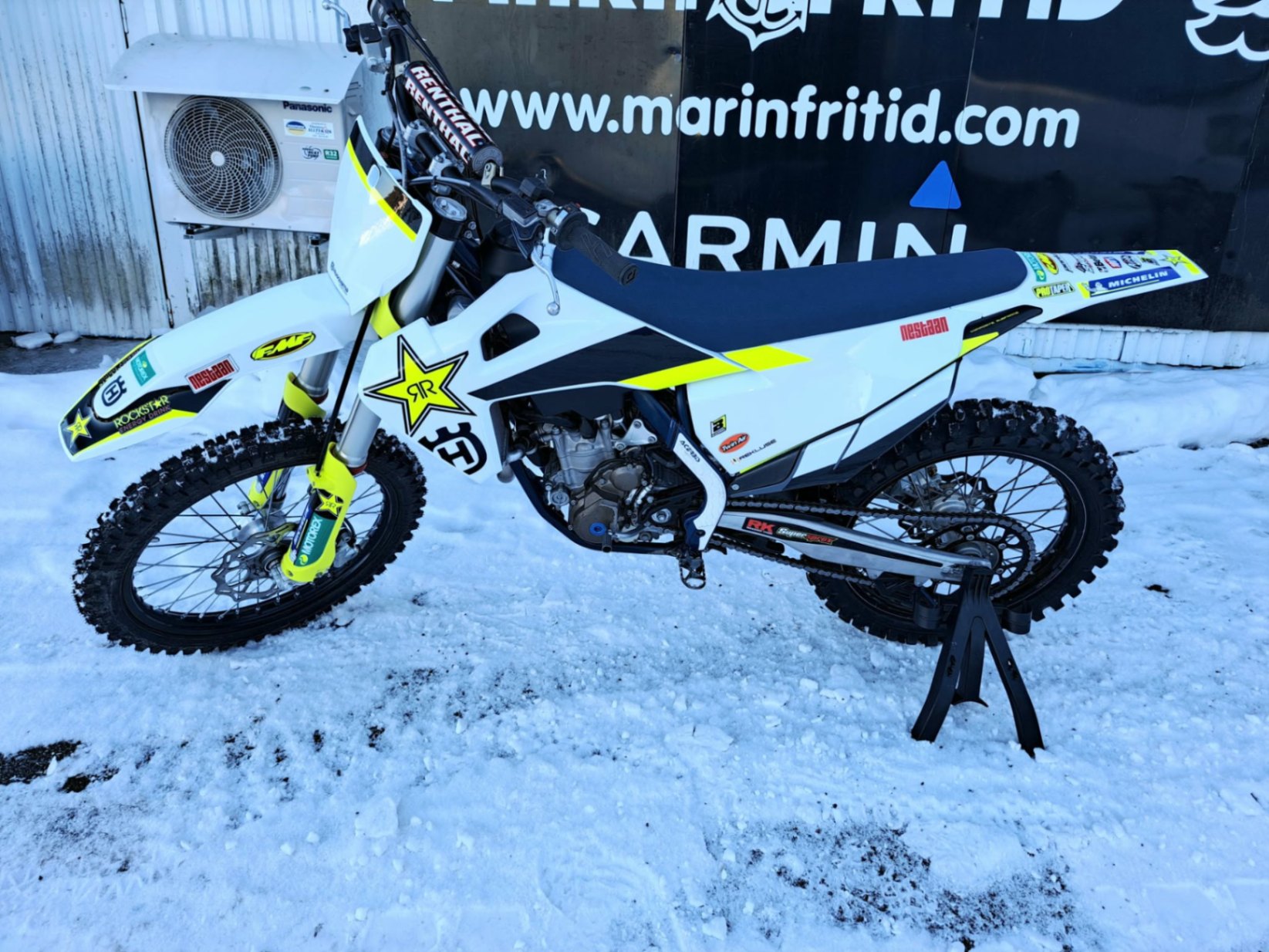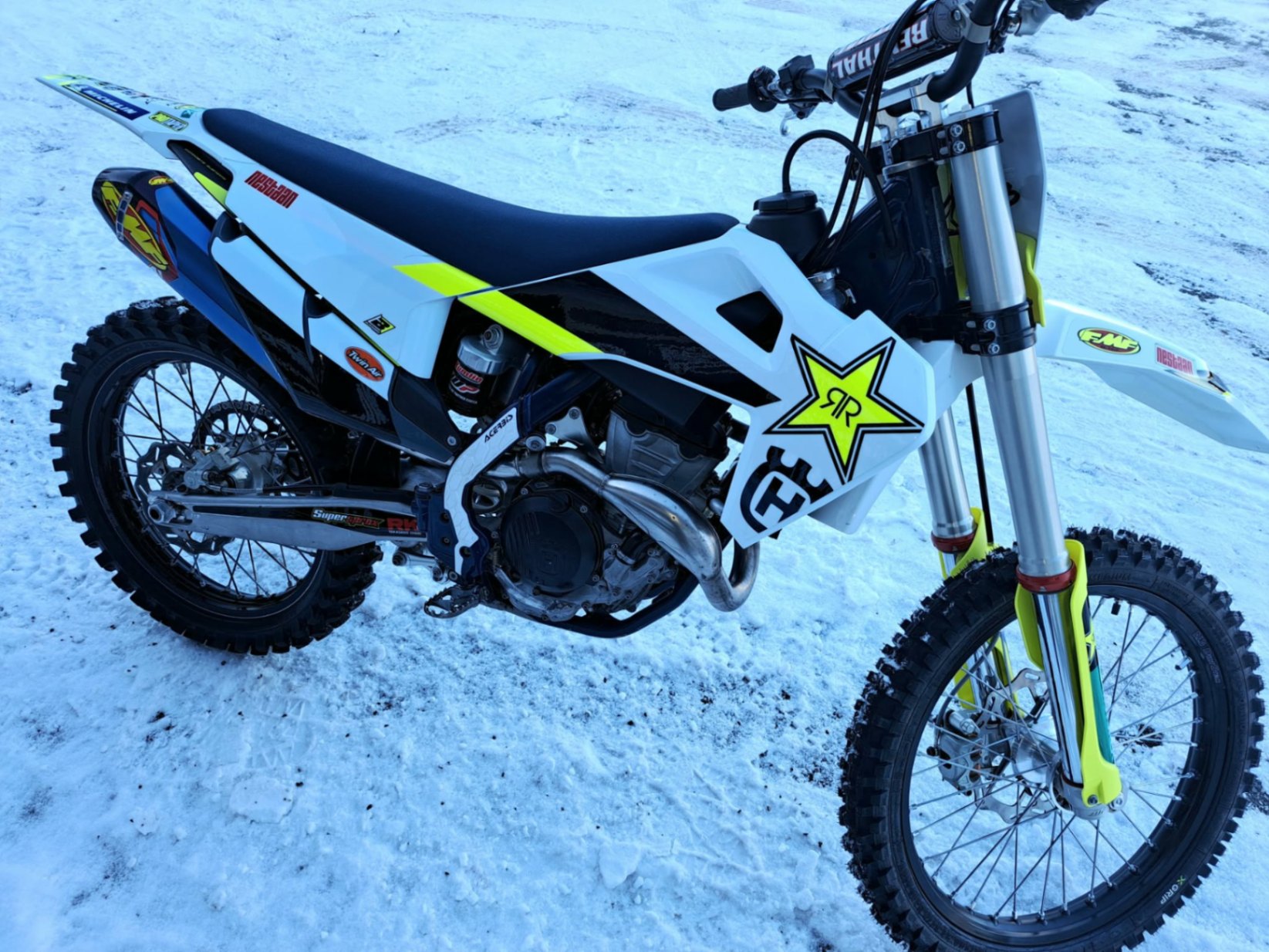 Väldigt fin Fc 350 2019 med endast 32 timmar på mätaren. Genomgången och uppfixad av oss med en del nya delar. Gaffel ny, framhjul nytt, bakram ny, tank ny, plast ny, dekaler nya, ljuddämapare (FMF) ny etc.