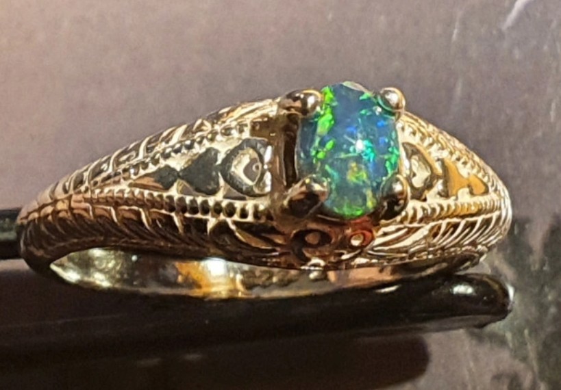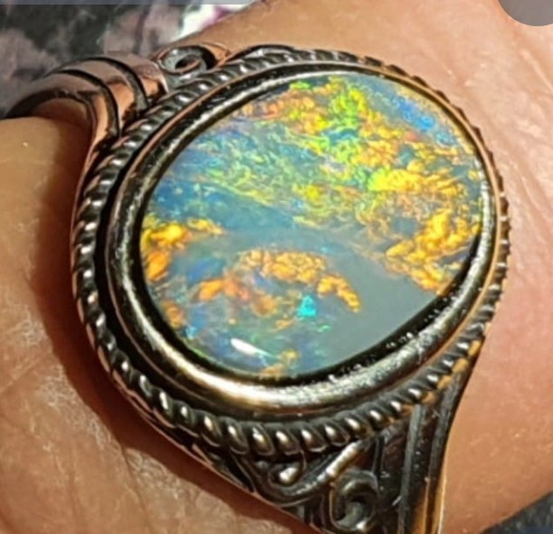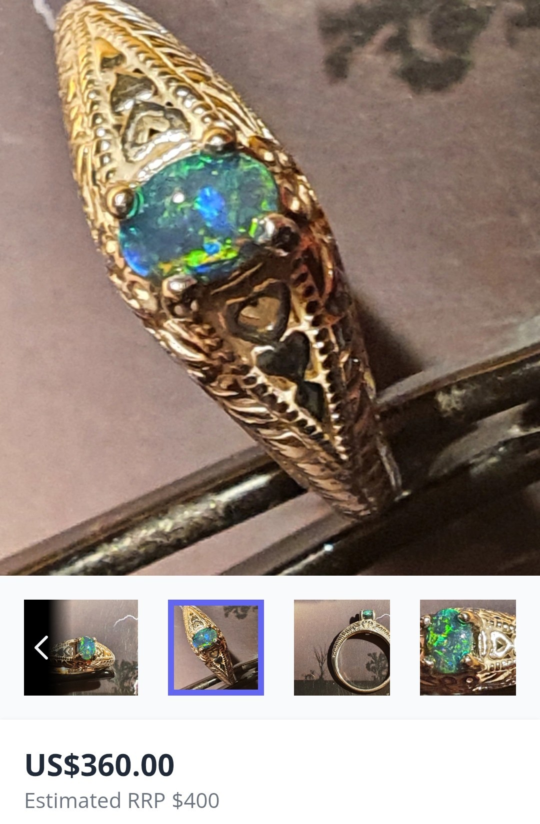 Video of the the item can be seen here! https://www.opalauctions.com/products/awesome-green-on-black-opal-ring-price-reduced-1400913