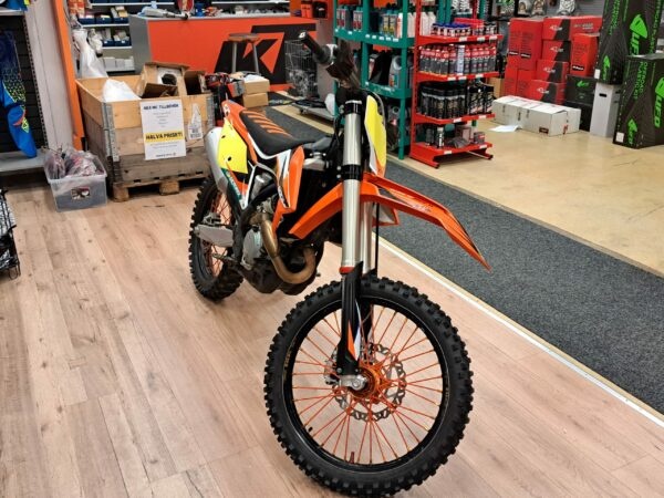 Kolvbyte är utfört och motorcykeln är nyligen servad, vilket gör att den är redo för nya timmar på banan. En populär modell som passar bra för både träning och tävling.